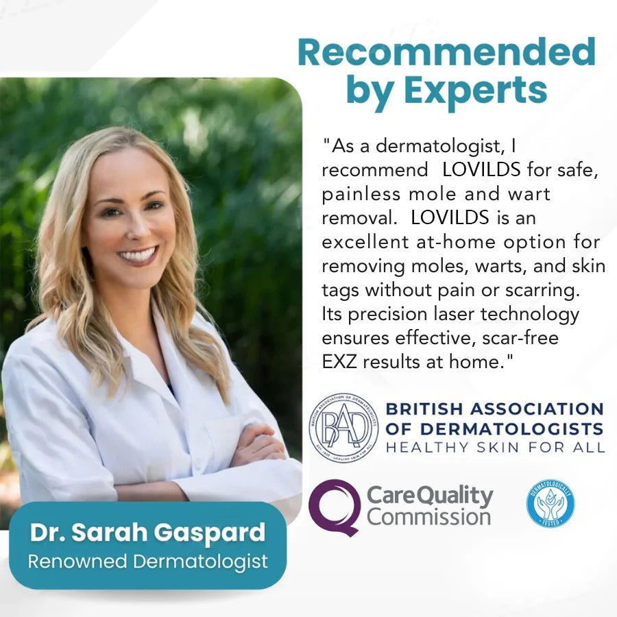 The UK's leading dermatologists consider LOVILDS⢠ to be a breakthrough in at-home skin therapy. Backed by clinical studies and top dermatology associations, regular use of LOVILDS⢠has been proven to be effective in reducing moles, warts, dark spots and skin blemishes. Experts recognize LOVILDS⢠as a safe, non-invasive alternative to costly professional treatments, making high quality skincare accessible to all.